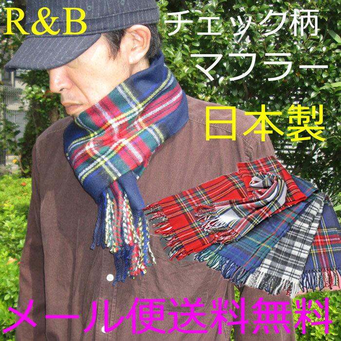 メンズ マフラー特集! R&B メンズ マフラーは流行のデザイン、素材、カラーを 厳選品揃えしました!! メンズ タータン チェック(チェック柄)マフラー アクリル素材でほっこり暖か(あったか) しかも 日本製 生地は薄めですが、(だから)ボリュームが出すぎず、首まわりにもぴったりです」 また、たためばカバンに収納可能です。