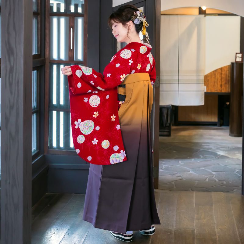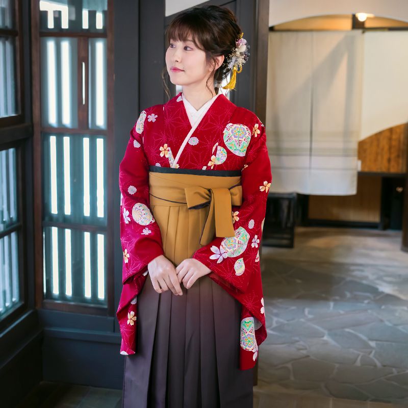 【HOT KEYWORD】卒業式 謝恩会 小学生 中学生 高校 大学 短大 専門学校 先生 卒業式袴 レンタル着物 レンタル袴 袴 女袴 二尺袖 小振袖 袴セット 女性 女 レディース フルセット はかま 貸衣装 rental レンタル衣装 卒業袴 anan 品番/商品名 G073/赤毬柄☆
