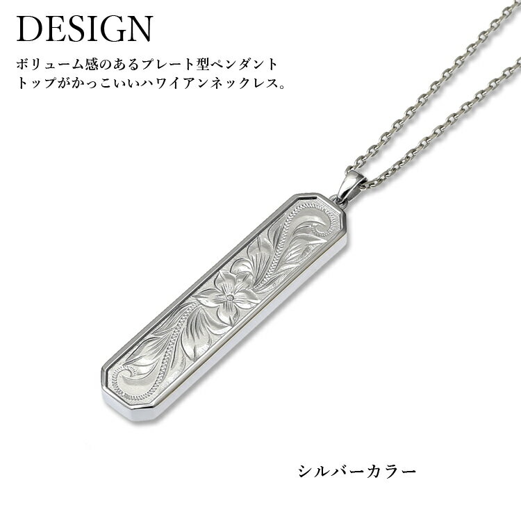 ギフト対応 ボリューム感のあるプレート型ペンダントトップがかっこいいハワイアンネックレス。