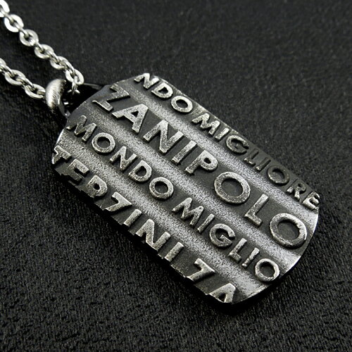 刻印メッセージ MONDO MIGLIORE (より良い世界) ※イタリア語 ブランド/シリーズ Zanipolo Terzini ( ザニポロ・タルツィーニ ) 型番 ZTP458 トップサイズ(約) 縦30.5mm / 横18mm チェーンサイズ(約) 45cm (アジャスター付き。